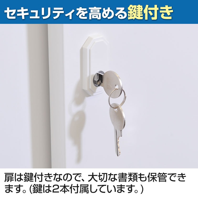 扉は鍵付きなので、大切な書類も保管できます。(鍵は2本付属しています。)