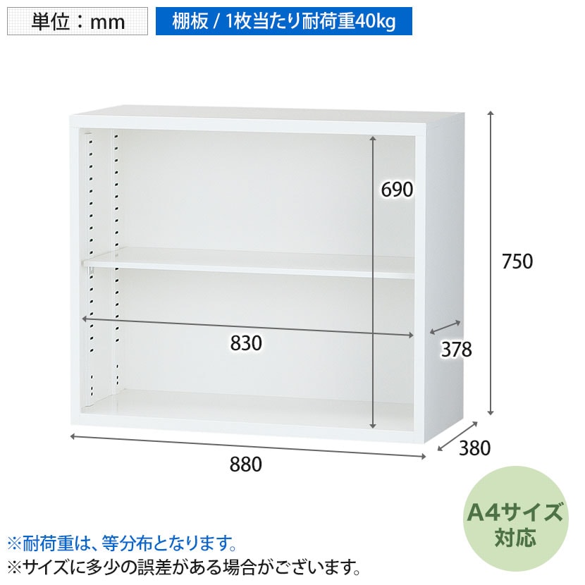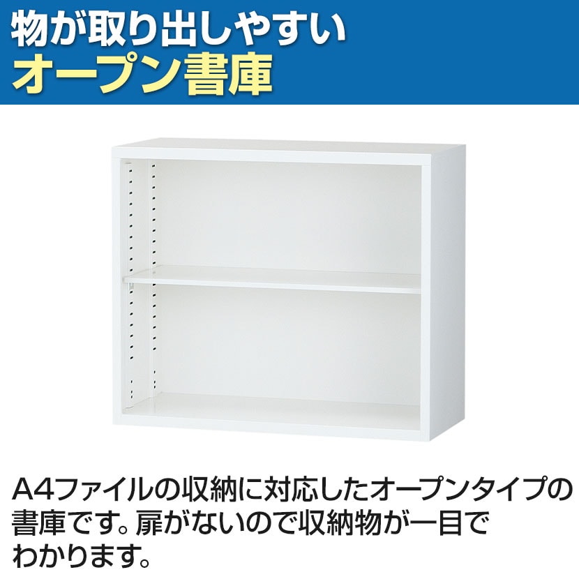 A4ファイルの収納に対応したオープンタイプの書庫です。扉がないので収納物が一目でわかります。