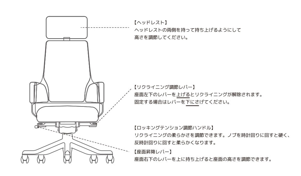 ロッキングテンション調整/ロッキング強弱の調節ができます。