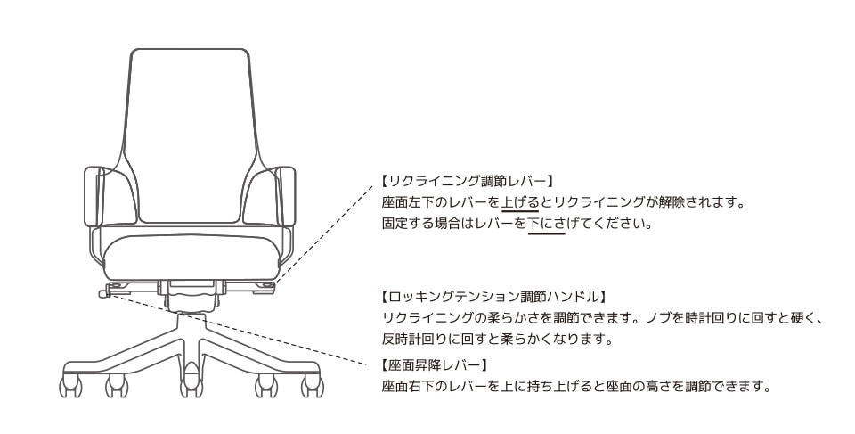 ロッキングテンション調整/ロッキング強弱の調節ができます。