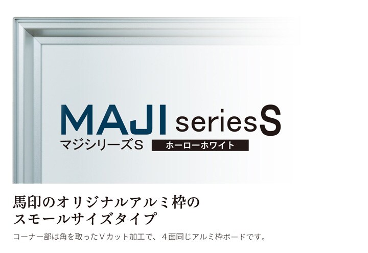 安全を考慮したプラスチックコーナーパーツと4面溝付オリジナルアルミ枠のホワイトボードです。