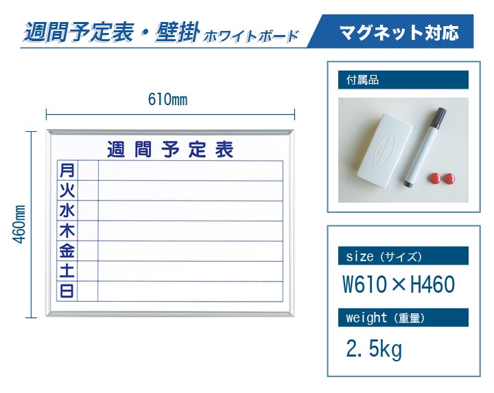 - 壁掛け ホワイトボード スチール 予定表
