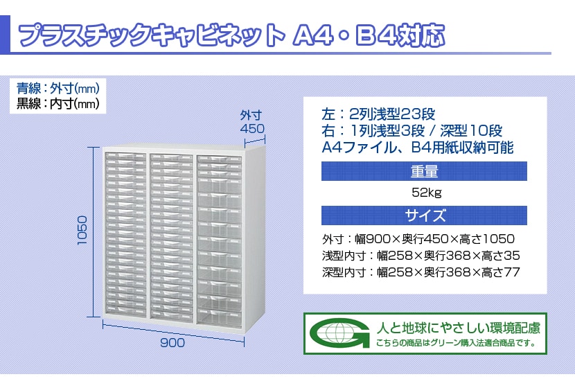 左2列浅型23段・右1列浅型3段/深型10段、A4ファイル・B4用紙収納可能