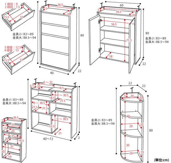 高さ 1段目:90 2段目:75 3段目:125 4段目:130mm