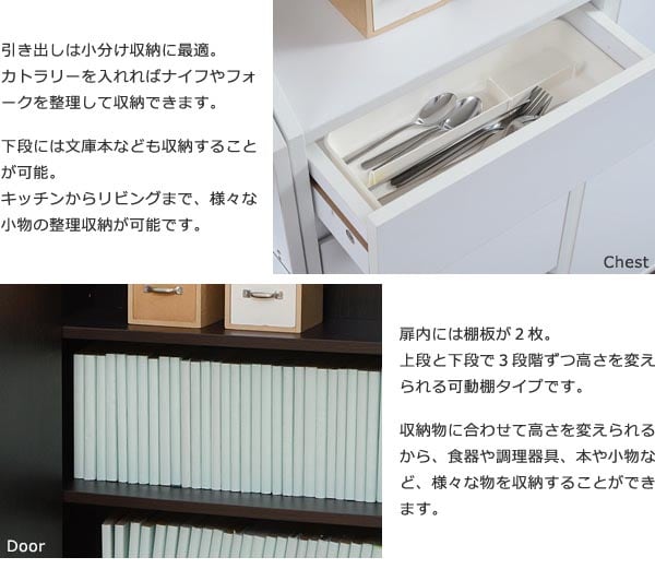 ●キッチンのカウンター下にもリビングの窓下にも使えるオールマイティなコンパクト収納のお得なセット。