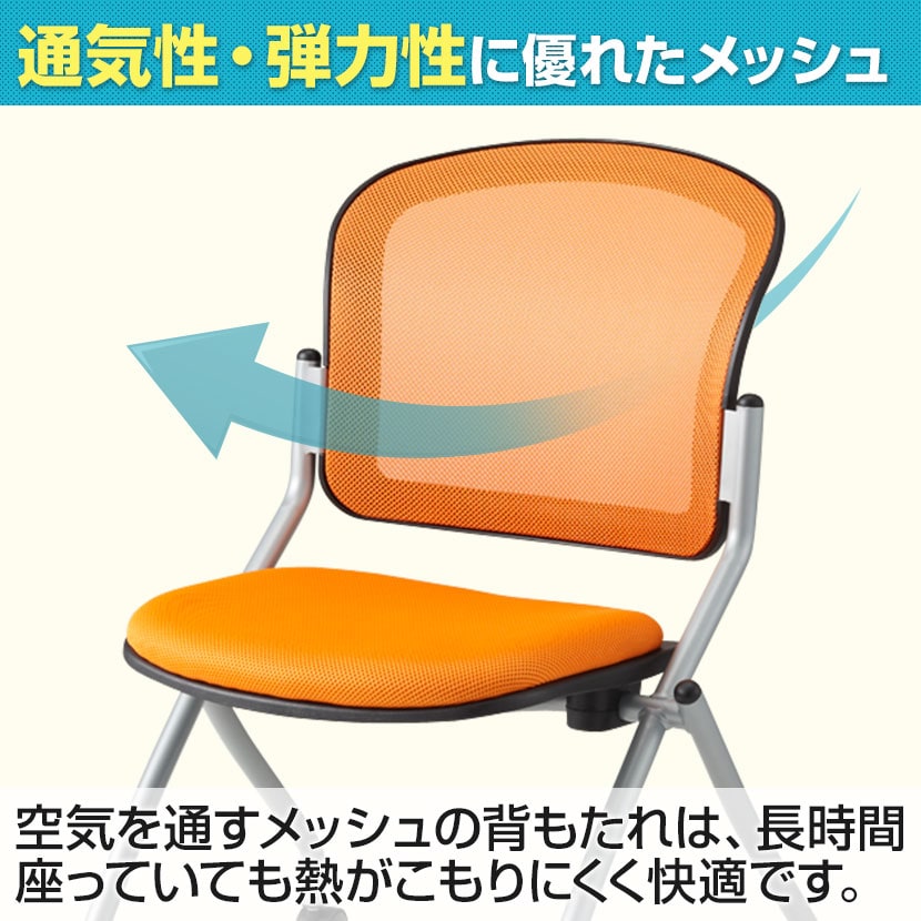 様々なスペースに馴染むシンプルデザインのテーブルと、通気性に優れたメッシュ素材を使用したメッシュネスティングチェアをセットでお届け!テーブルは日本人の体格に合わせやすい高さの720mmで、使いやすい3色をご用意。チェアはキャスター付きで移動しやすく、空間イメージに合わせて明るいカラーとシックなカラーの3色からお選びいただけます。