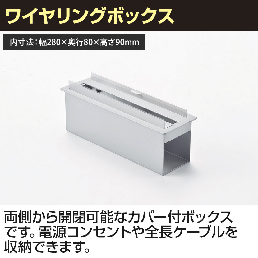 両側から開閉可能なカバー付ボックスです。電源コンセントや全長ケーブルを収納できます。