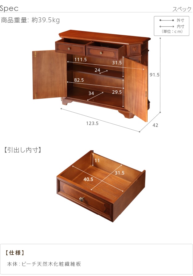 引出し内寸 / 幅405×奥行315×高さ110mm