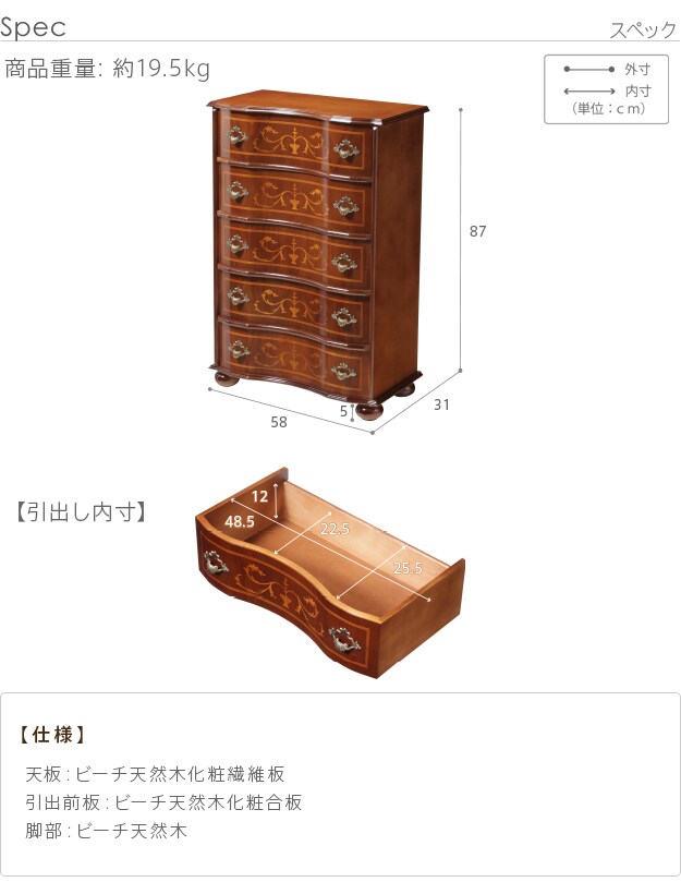 引出し内寸 / 幅485×奥行225(最大255)×高さ120mm