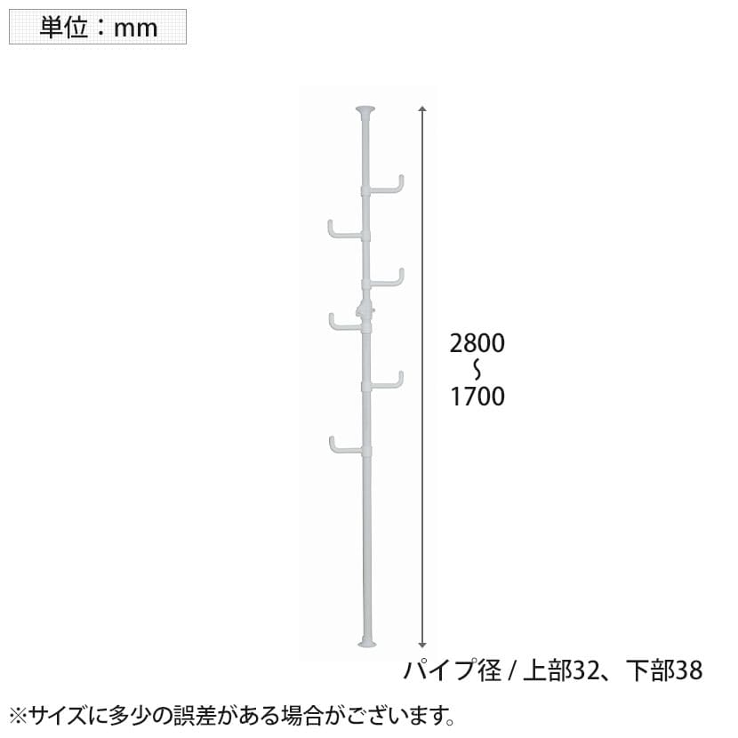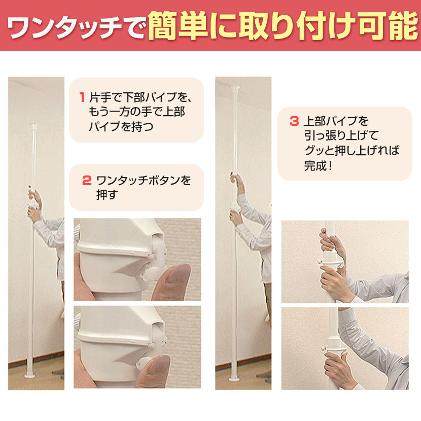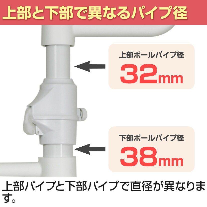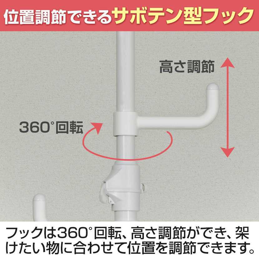 ・ポールの足元は80mmの円盤型を採用しているため、お部屋の隅や玄関先、洗面所、脱衣所など、狭いスペースも有効利用できます。