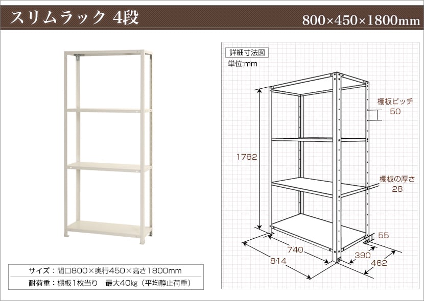 - スチールラック スリムラック