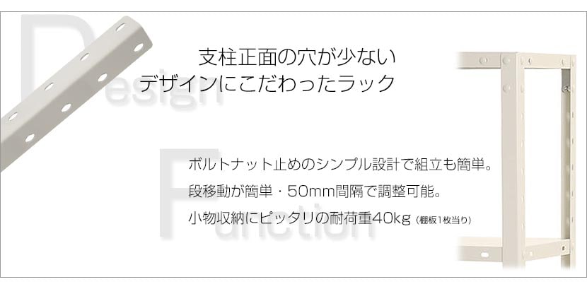 ・前方の支柱穴が少なく、穴を小さくしたスマートなラックです。