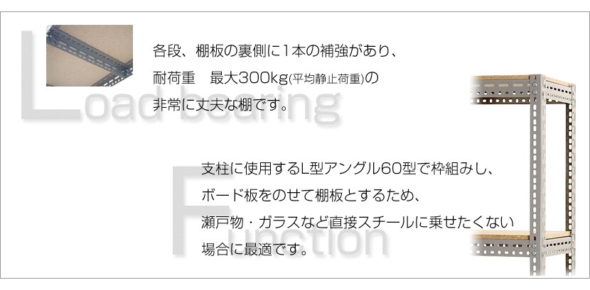 - スチールラック 中量棚 300kg/段