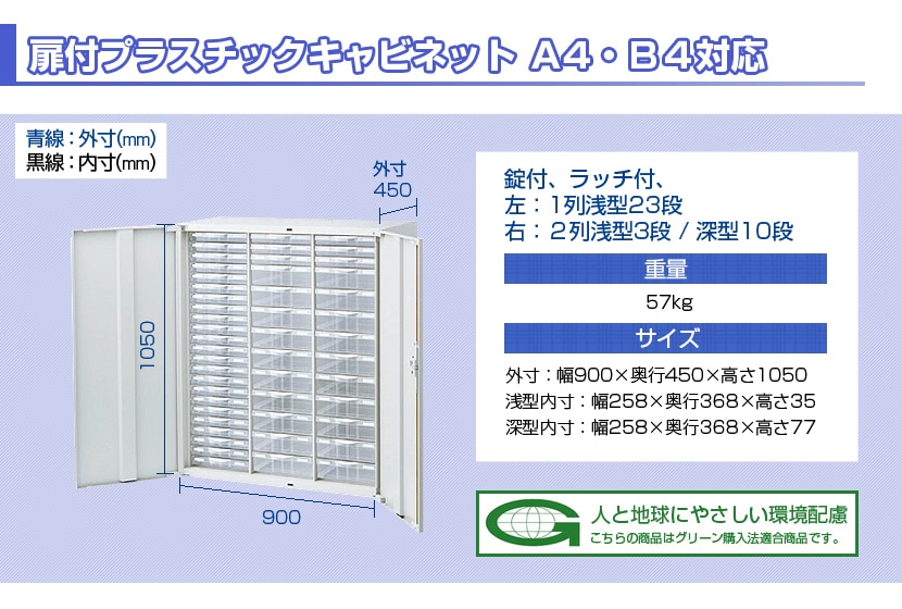 左1列浅型23段・右2列浅型3段/深型10段、A4ファイル・B4用紙収納可能