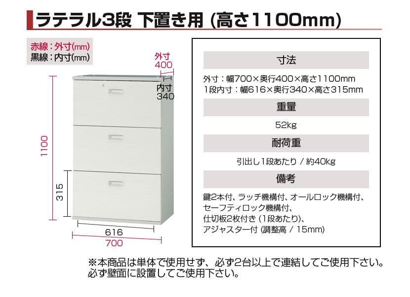鍵2本付き、仕切板2枚付き(1段あたり)