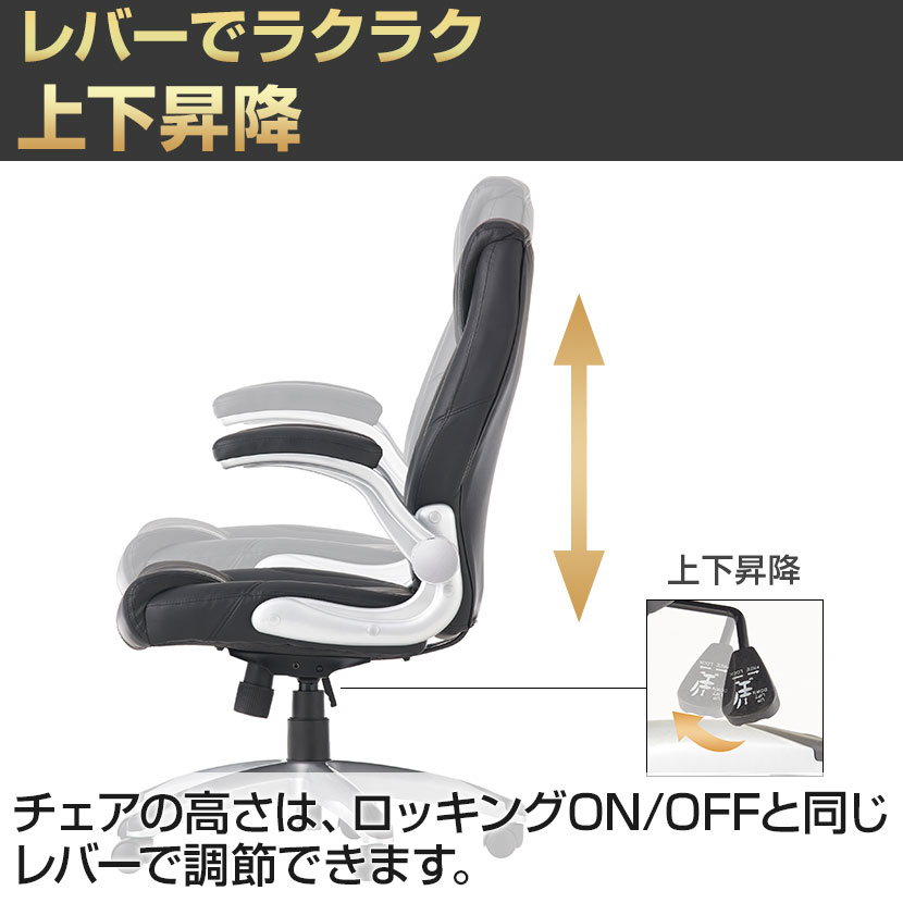 チェアの高さは、ロッキングON/OFFと同じレバーで調節できます。