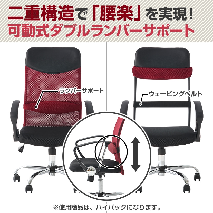 柔らかくモッチリとしたランバーサポートと、心地よい反力のウェービングベルトによって、しっかりと腰を支えます。