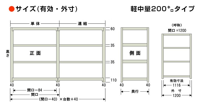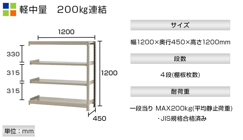 - スチールラック 軽中量棚 200kg/段