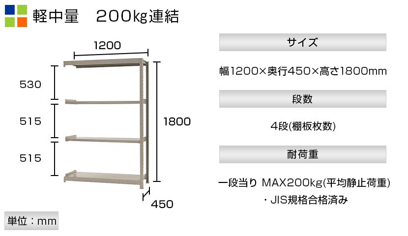 - スチールラック 軽中量棚 200kg/段