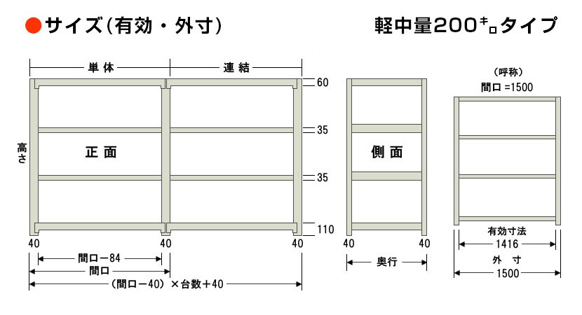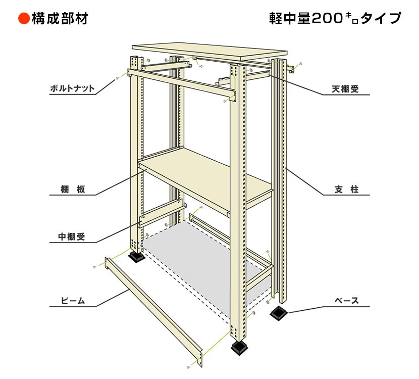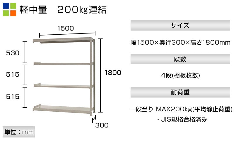 - スチールラック 軽中量棚 200kg/段