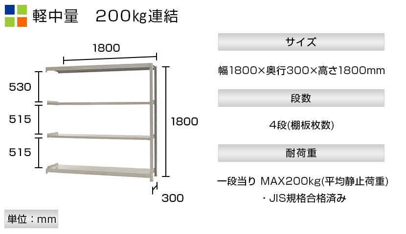 ※連結(増設用)は片側の支柱が無い為、必ず単体と組み合わせて使用して下さい。