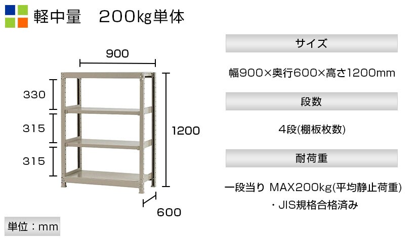 【本体】スチールラック 軽中量 200kg-単体 ...21,000円(税込)19,091円(税抜) -