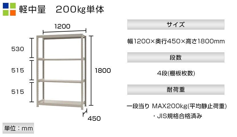 【本体】国産スチールラック 中軽量棚200kg/段...14,600円(税込)13,273円(税抜) -