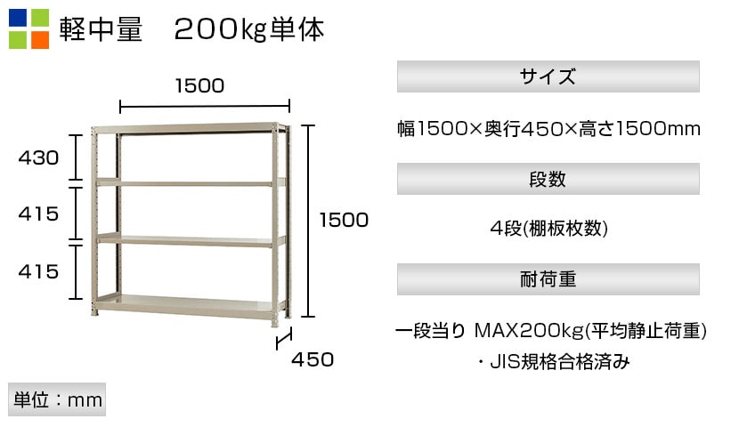 - スチールラック 軽中量棚 200kg/段