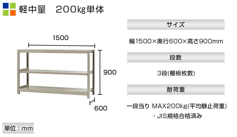 - スチールラック 軽中量棚 200kg/段