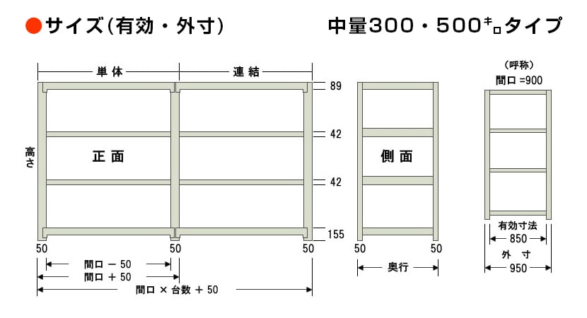※連結(増設用)は片側の支柱が無い為、必ず単体と組み合わせて使用して下さい。