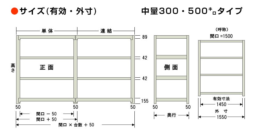 - スチールラック 中量棚 500kg/段