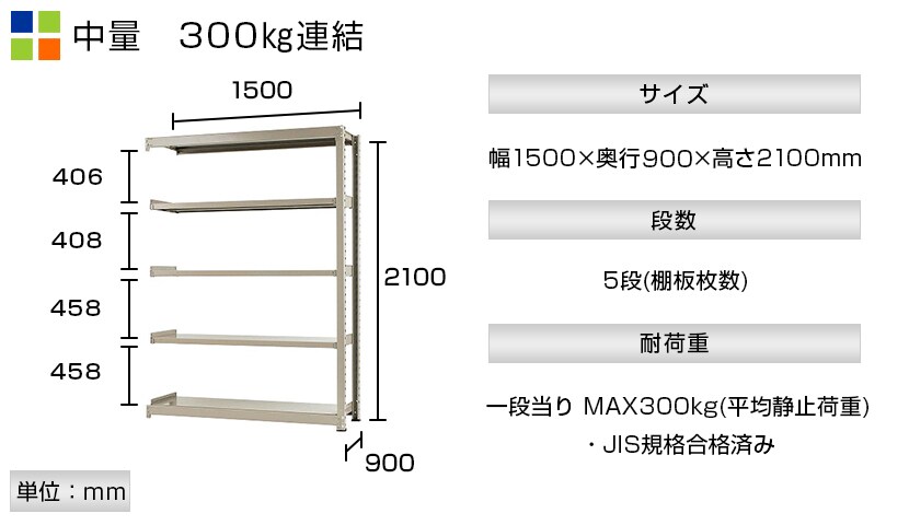 - スチールラック 中量棚 300kg/段