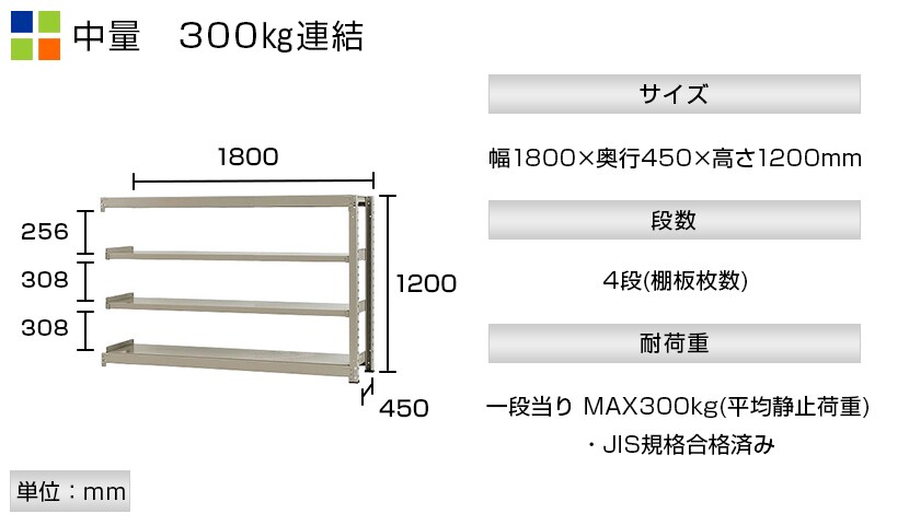 ※連結(増設用)は片側の支柱が無い為、必ず単体と組み合わせて使用して下さい。