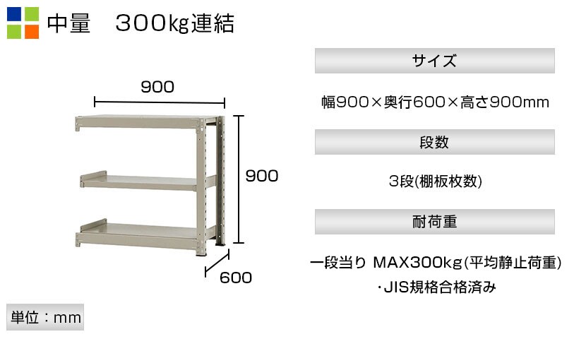 ※連結(増設用)は片側の支柱が無い為、必ず単体と組み合わせて使用して下さい。