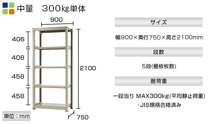 【本体】スチールラック 中量 300kg-単体 6...35,400円(税込)32,182円(税抜) -