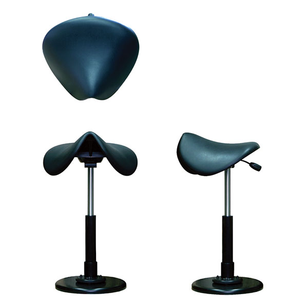 ・鞍型形状の座面は脚を拡げて座るので重心が安定します。