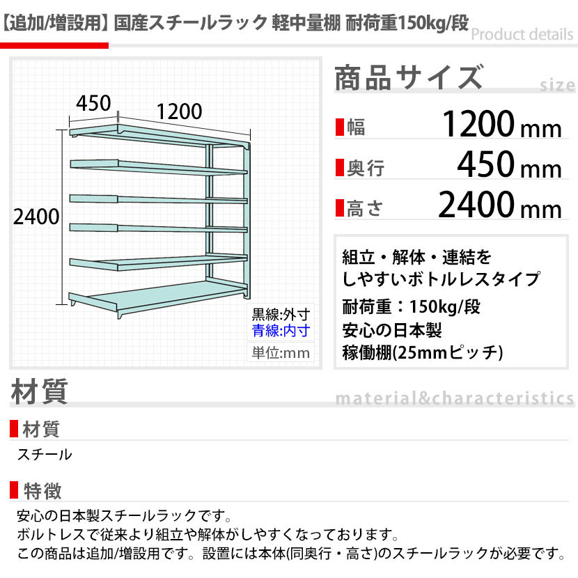 【追加/増設用】スチールラック 軽中量 150kg...22,900円(税込)20,819円(税抜)