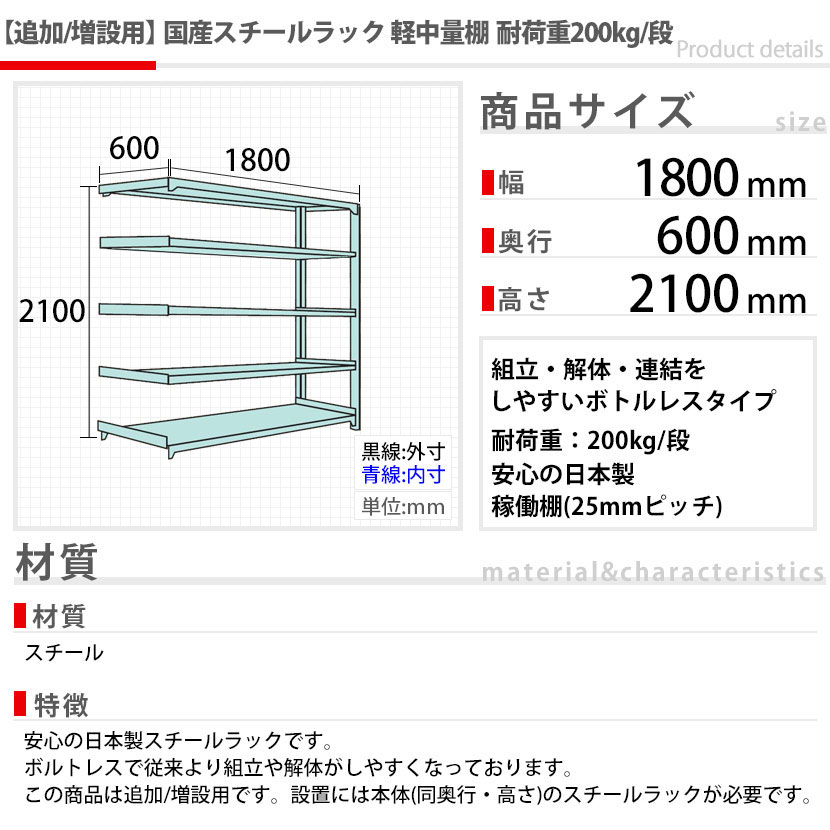 - スチールラック 軽中量棚 200kg/段