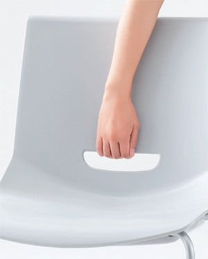穴のあいた背のデザインにより持ち運びが楽になりました。