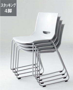 床置きで4脚までスタッキング可能。(キャスター脚タイプを除く)