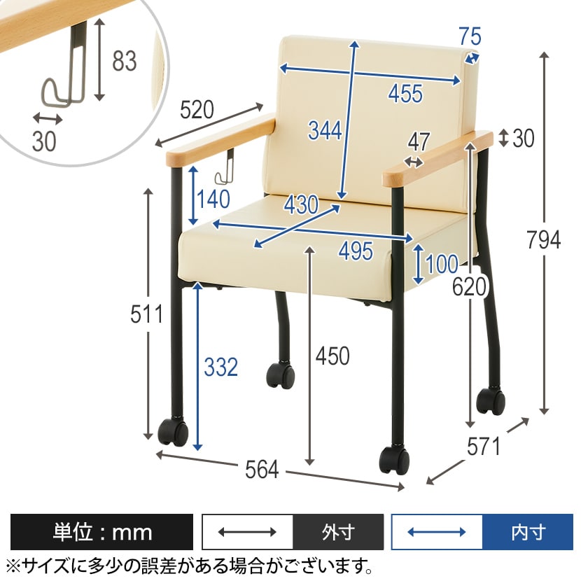 ※木肘部分は天然木使用のため、木目や節・色の出方に個体差がございます。予めご了承ください。
