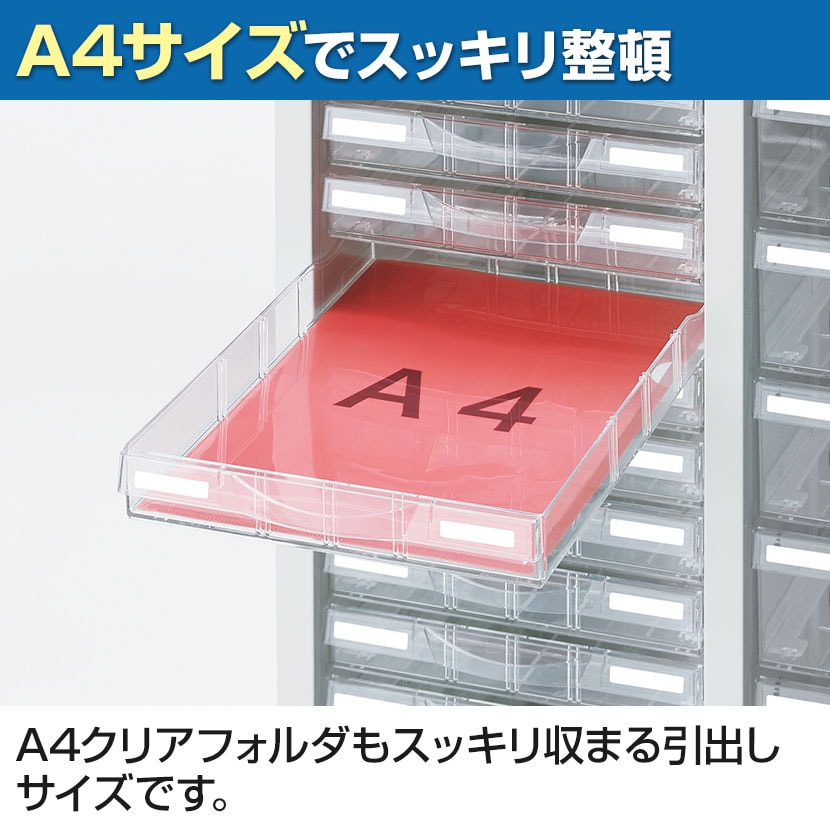 A4クリアフォルダもスッキリ収まる引き出しサイズです。