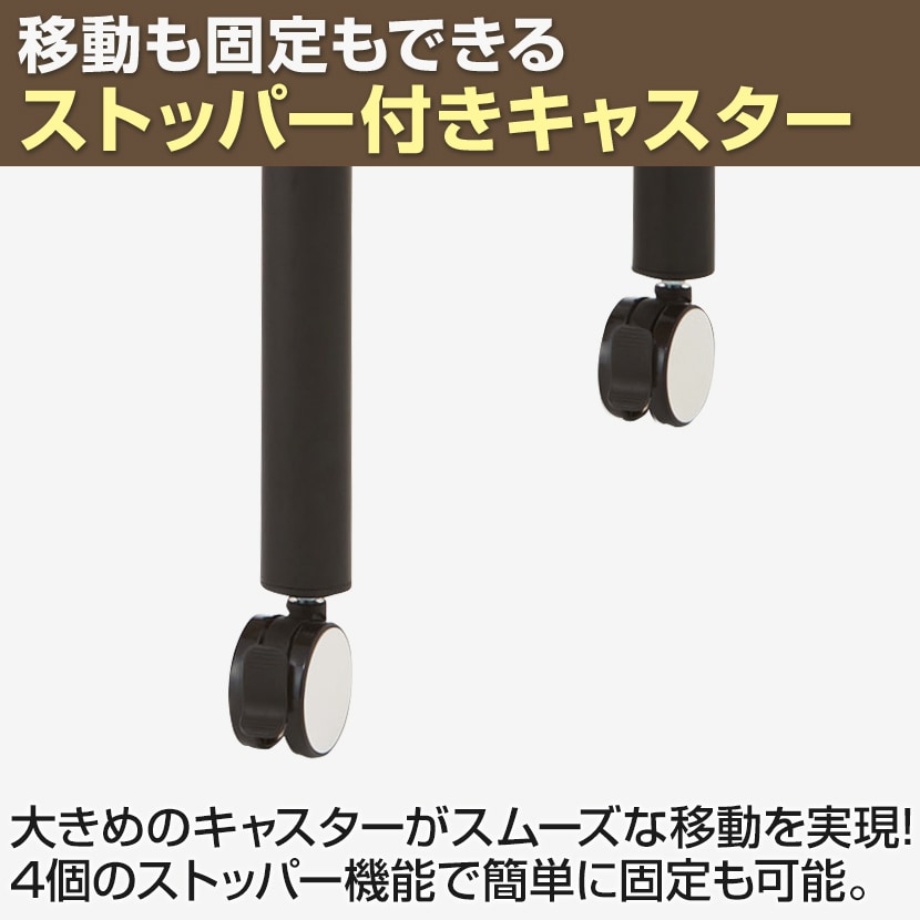 大きめのキャスターがスムーズな移動を実現。4個のストッパー機能で簡単にしっかりと固定もできます。