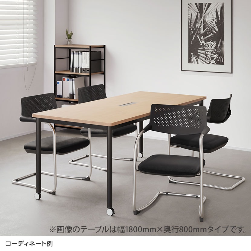 - 会議用テーブル ブラック脚×木目調天板