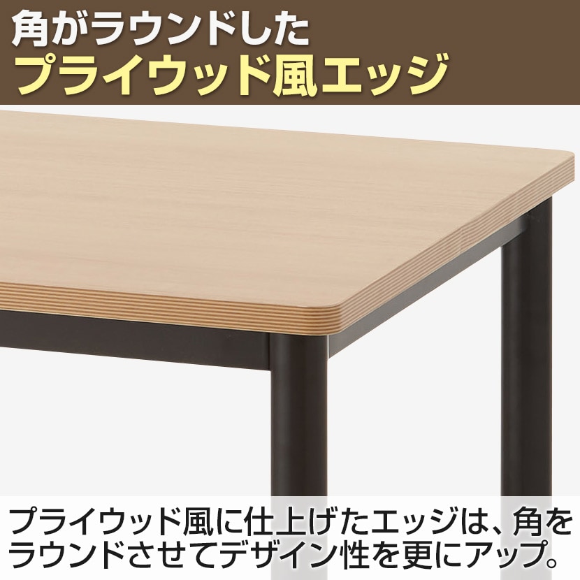 プライウッド風に仕上げたエッジは、角をラウンドさせてデザイン性を更にアップ。尖りがないので安全性も高まります。天板は傷や汚れに強いメラミン化粧板を使用。