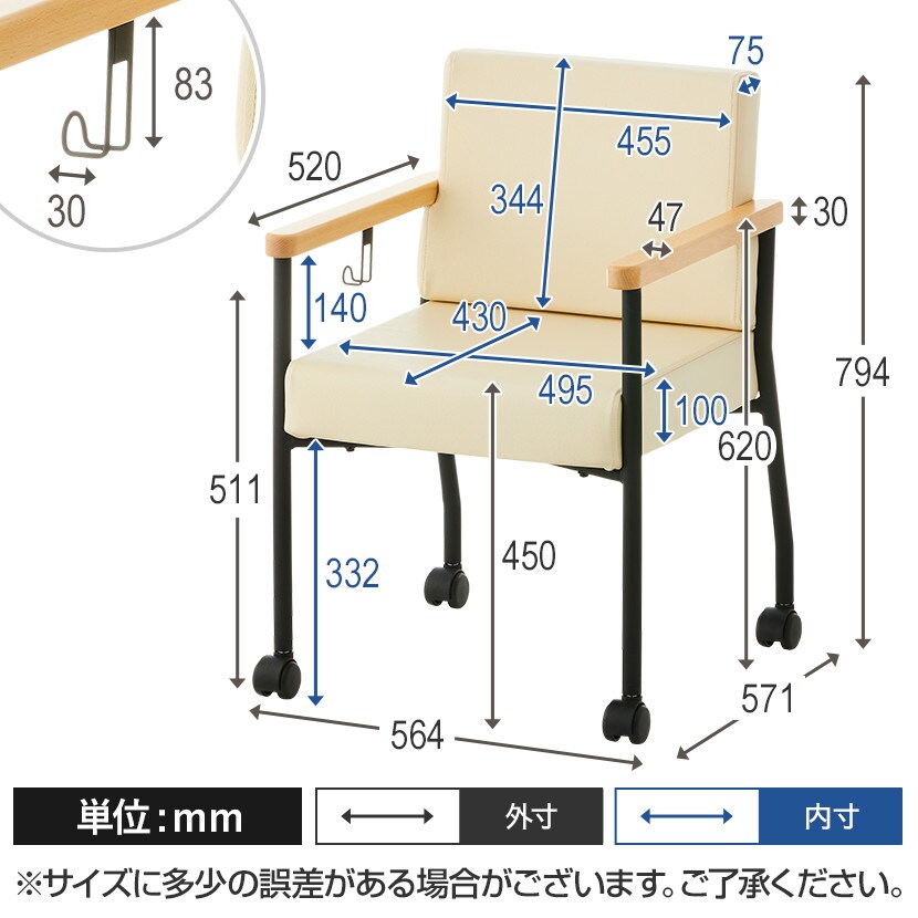 汚れてもサッと拭き取れるPVCレザー仕様。水拭き可能で、お手入れしやすい素材です。座面も厚く、ゆったり座れます。