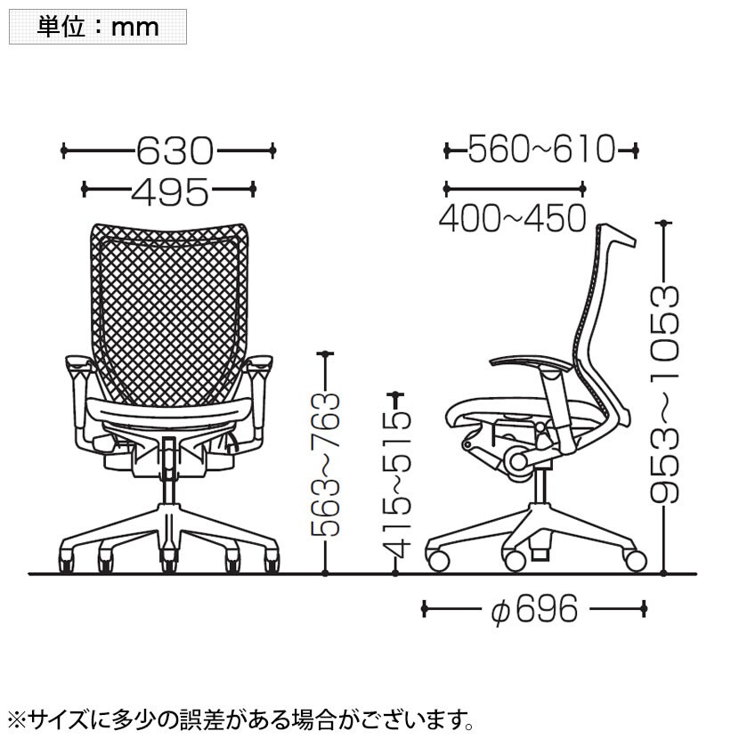 スタンダードメッシュ素材は適度な弾力性を持ち、体をしっかりサポートし、優れた通気性により長時間でも快適な座り心地を実現します。体格に合わせ、腰部を心地よく支持するランバーサポート付き。上下50mmの範囲で調整が可能です。