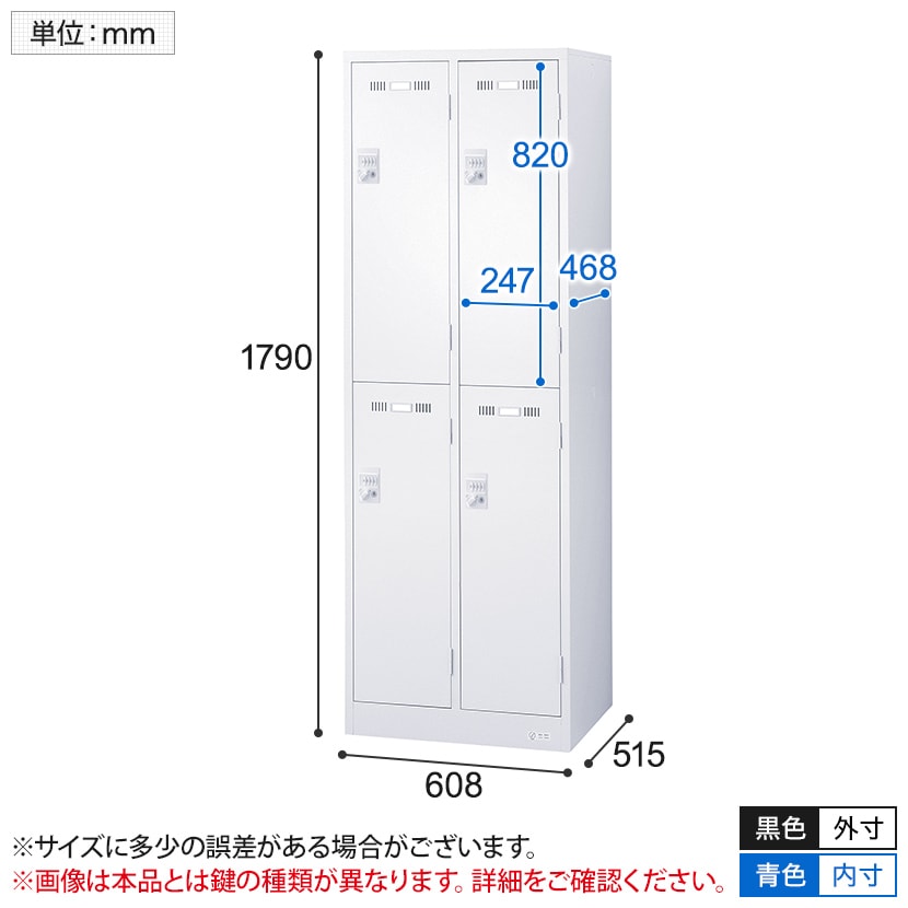 4人用 2列2段(ワイド) スチールロッカー 内筒...60,280円(税込)54,800円(税抜) -
