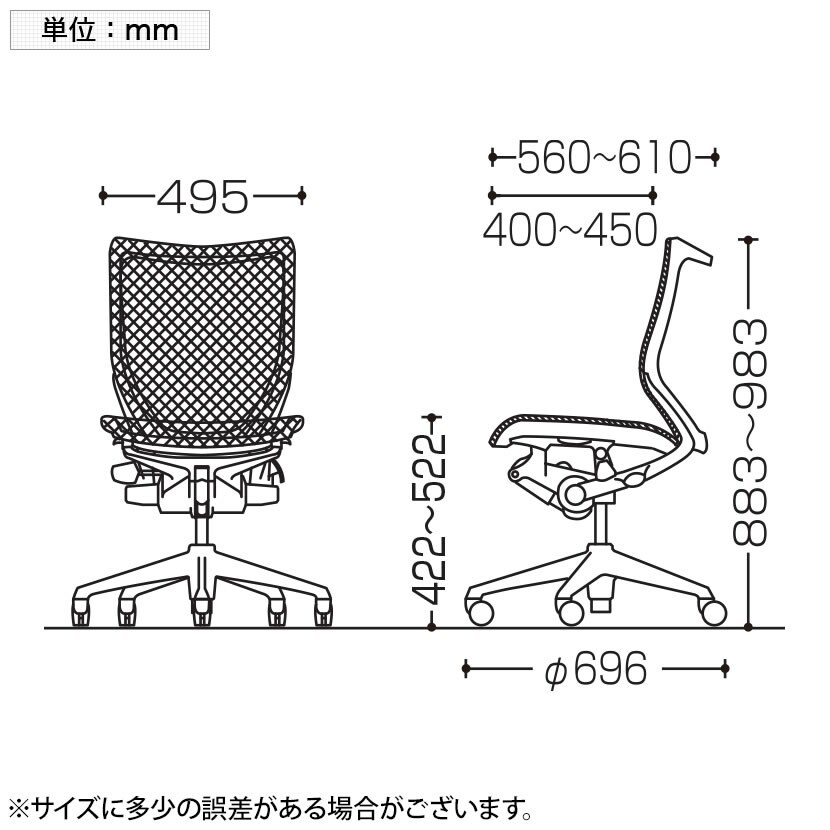 スタンダードメッシュ素材は適度な弾力性を持ち、体をしっかりサポートし、優れた通気性により長時間でも快適な座り心地を実現します。体格に合わせ、腰部を心地よく支持するランバーサポート付き。上下50mmの範囲で調整が可能です。