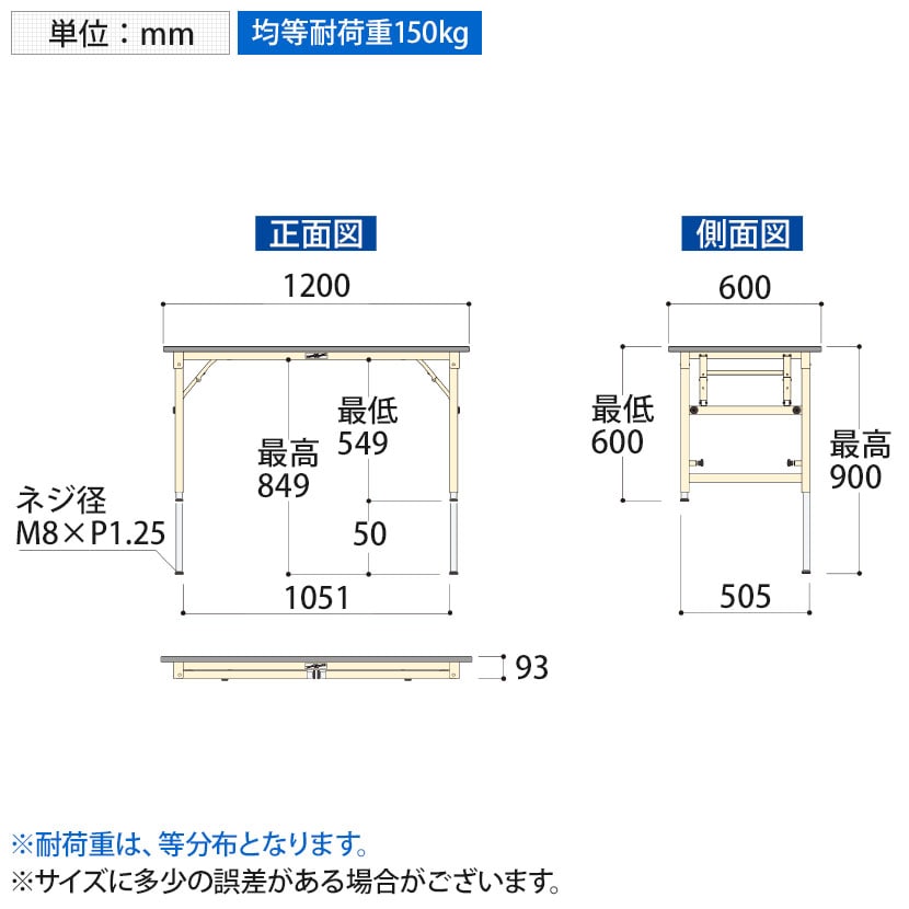 工具不要で4本脚を個別に高さ調整可能! 折りたたみワークテーブル
